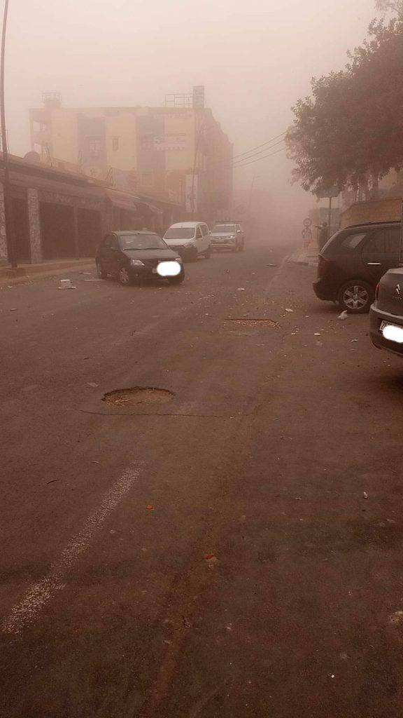 حلت قبل لحظات عاصفة غبار قوية بمدينة إمنتانوت لتحول فضاءها إلى مشهد درامي تعذرت من خلاله الرؤية على مستعملي الطريق، الشيء الذي دفع بأغلبهم إلى التوقف إلى حين مرور العاصفة.