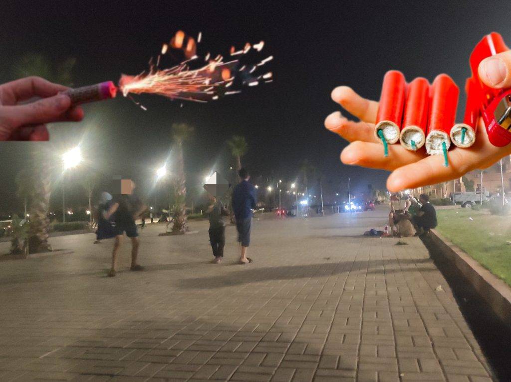 وعلاقة بالموضوع، وقفت جريدة مراكش الاخبارية امس الثلاثاء 9 يوليوز عند قيام مجموعة من القاصرين بترويج المفرقعات وسط المنتزه الفاصل بين حي المسيرة 3 ومنطقة الضحى ابواب مراكش .
