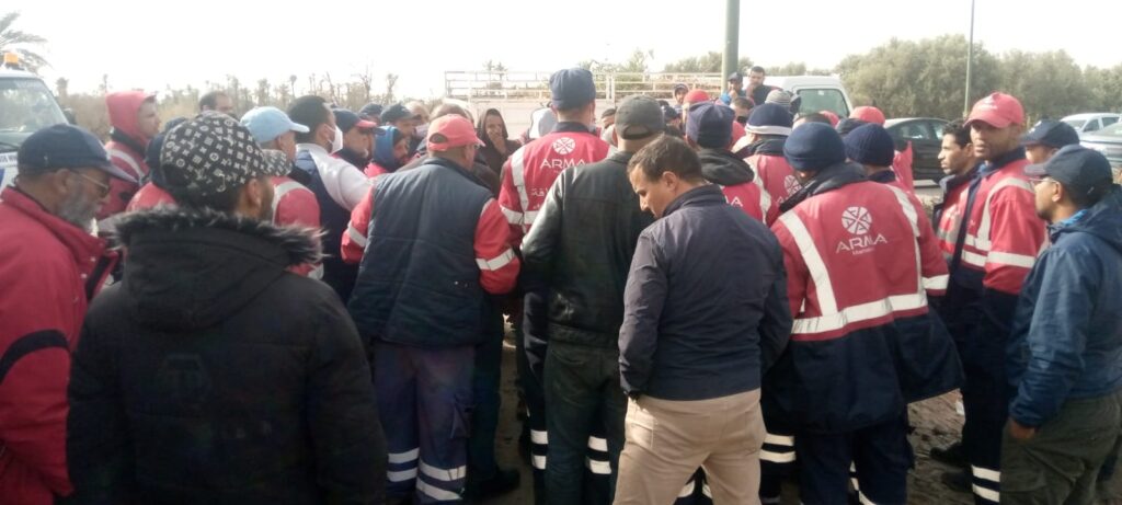 شهدت مدينة مراكش صباح اليوم السبت 22 يناير احتجاجا لعمال النظافة بالمدينة بسبب الاعتداءات المتكررة التي يتعرضون لها من طرف “الميخالة”، حيث قاموا في حوالي الساعة السادسة من صباح اليوم باعتراض طريق شاحنات الأزبال ومنعها من الولوج إلى المطرح المؤقت بدوار على مقربة من متحف حضارة الماء، ما جعل عمال النظافة يصطفون شاحناتهم ويمتنعون عن العمل إلى جين مجيء السلطة.