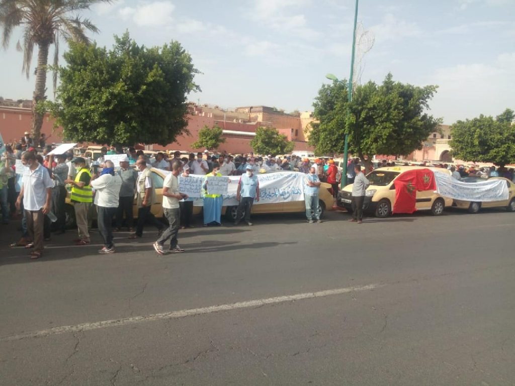 فيديو : سائقو الطاكسيات بمراكش يحتجون في عز الحرارة لتجاهل مطالبهم من والي الجهة