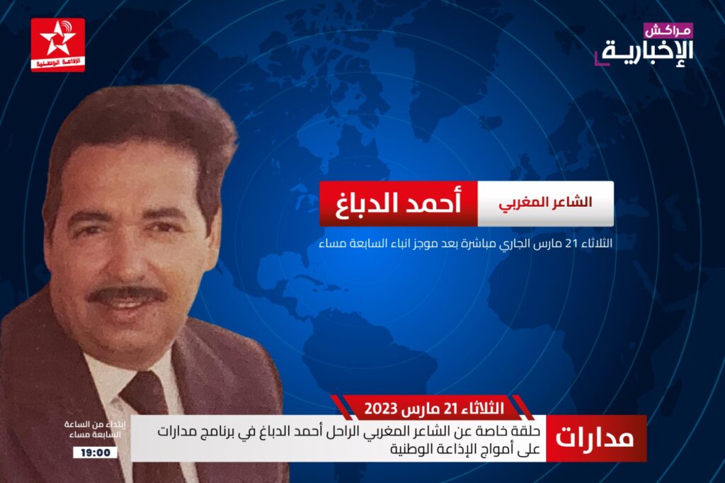 يلتقي مستمعو الاذاعة الوطنية من الرباط هذا الاسبوع ، مع حلقة جديدة من البرنامج الفكري والادبي “مدارات ” ، يخصصها الاعلامي عبدالاله التهاني ، لاضاءة مشاهد من سيرة وأشعار الشاعر المرحوم أحمد الدباغ ، الذي يعتبر من رواد التجديد في القصيدة الكلاسيكية بالمغرب ، إلى جانب غيره من فحول الشعر العمودي في الادب المغربي الحديث ، كمحمد الحلوي ومولاي علي الصقلي وإدريس الجاي ، وسواهم .