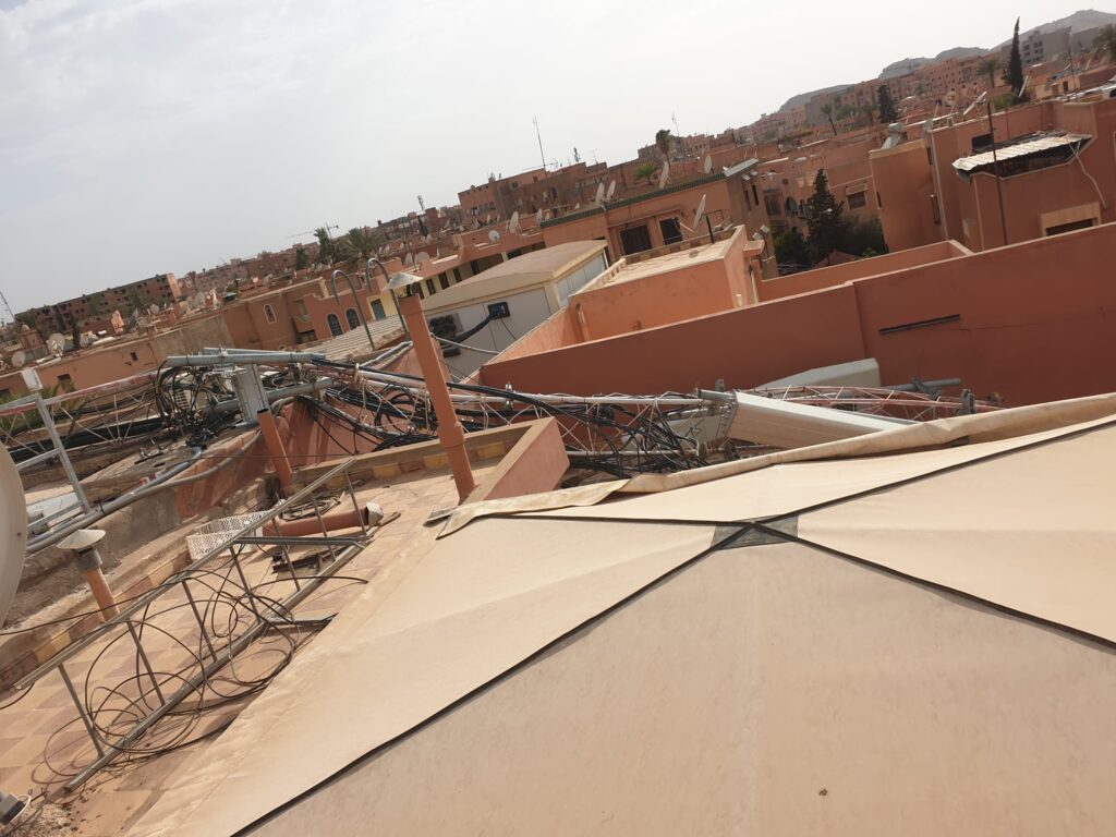 وأضاف ذات المتحدث، أن أحد اللاقطين الهوائيين كاد أن يتسبب في الكارثة بعدما سقط من فوق المنزل عندما شهدت خلال الأسبوع الماضي مدينة مراكش رياحا قوية، حيث ولحسن الحظ لم يخلف خسائر في الأرواح بحكم أن الحي كان شبه فارغ من المارة.