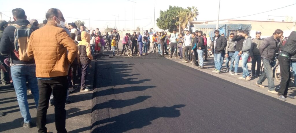 خرجت اليوم الخميس 16 دجنبر ساكنة “دوار القايد” التابع لجماعة “حربيل” في وقفة احتجاجية قطعوا خلالها أحد الطريق التي حصدت حوادثها أرواح عدد من أبناء المنطقة، مطالبين بتجهيزها بالمدارات أو المطبات الصناعية أو الإشارات الضوئية، وذلك بعد توالي حوادث السير المميتة في هذا الطريق، كان آخرها وفاة شاب من أبناء المنطقة أول أمس الثلاثاء حسب تصريحات الساكنة.