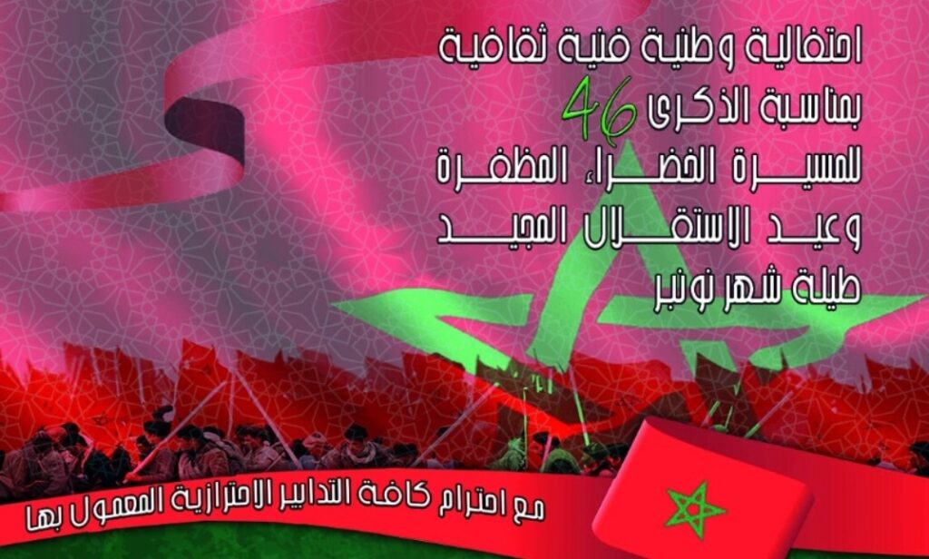واستحضارا لهذا الإرث الوطني وسعيا لترسيخ دلالاته ومعانيه في أوساط الناشئة من الأطفال، تمت برمجة صبحية وطنية للأطفال من تنشيط الجمعية المغربية للإيقاعات “بوم كيش” يوم غد السبت 6 نونبر، كما تتخلل اليوم ذاته سهرة وطنية موسيقية لفرقة أصيل للموسيقى والطرب برئاسة الأستاذ عز الدين الدياني.