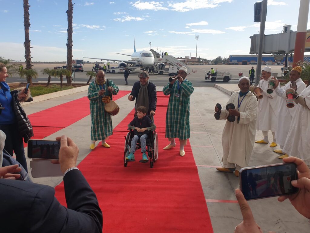 وبهذه المناسبة ، قام المجلس الجهوي للسياحة مراكش اسفي بالشراكة مع المكتب الوطني المغربي للسياحة والمكتب الوطني للمطارات (ONDA) بتنظيم حفل ترحيب للسائحين القادمين على متن هذه الرحلة.