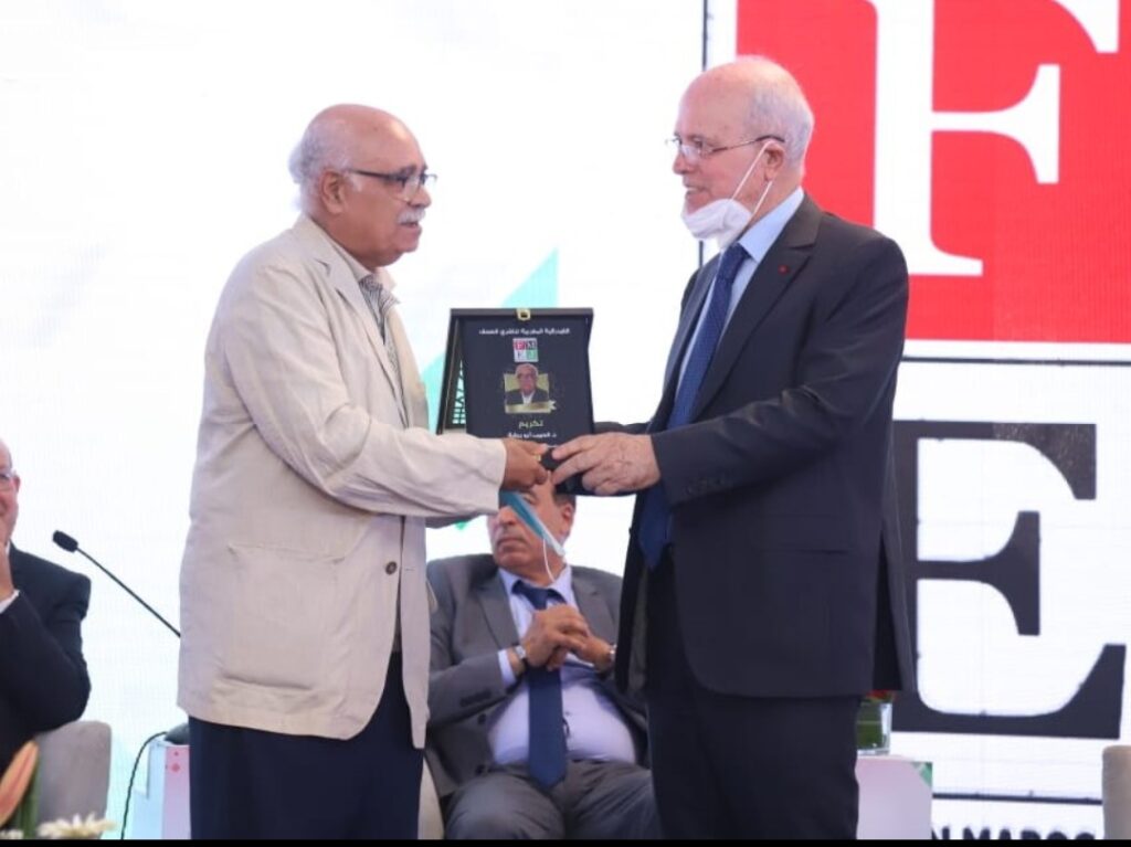 وجاء هذا التكريم، الذي جرى بفندق كنزي فرح بمراكش ، على هامش الندوة الوطنية التي نظمتها الفيدرالية المغربية لناشري الصحف حول موضوع : أي سياسات عمومية لمستقبل الصحافة المغربية بمشاركة الوزراء الذين تعاقبوا على قطاع الاتصال وقياديين من أحزاب سياسية، وهي الندوة التي تلت الجمع العام التأسيسي لفرع الفدرالية بجهة مراكش أسفي يوم امس الجمعة 16 يوليوز.