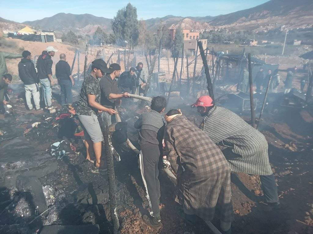 تمكن عدد من المواطنين زوال اليوم السبت بجماعة أسني التابعة لنفوذ عمالة اٍقليم الحوز، من اٍخماد النيران التي التهمت خيمة متضرر من الزلزال.