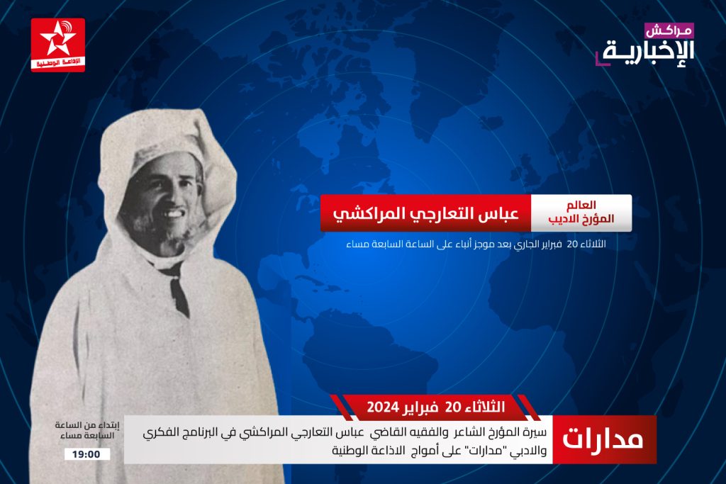مساء اليوم في برنامج مدارات بالإذاعة الوطنية: سيرة المؤرخ الشاعر والفقيه القاضي عباس التعارجي المراكشي