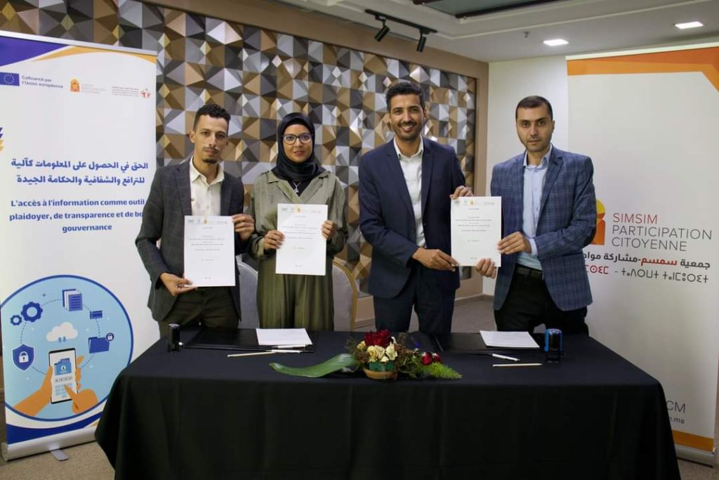 وقعت جمعية إبتكار مشاركة مواطنة مع جمعية سمسم مشاركة مواطنة اتفاقية شراكة في إطار مشروع “الحق في الحصول على المعلومات كآلية للترافع والشفافية والحكامة الجيدة” المدعم من طرف الاتحاد الاوروبي.