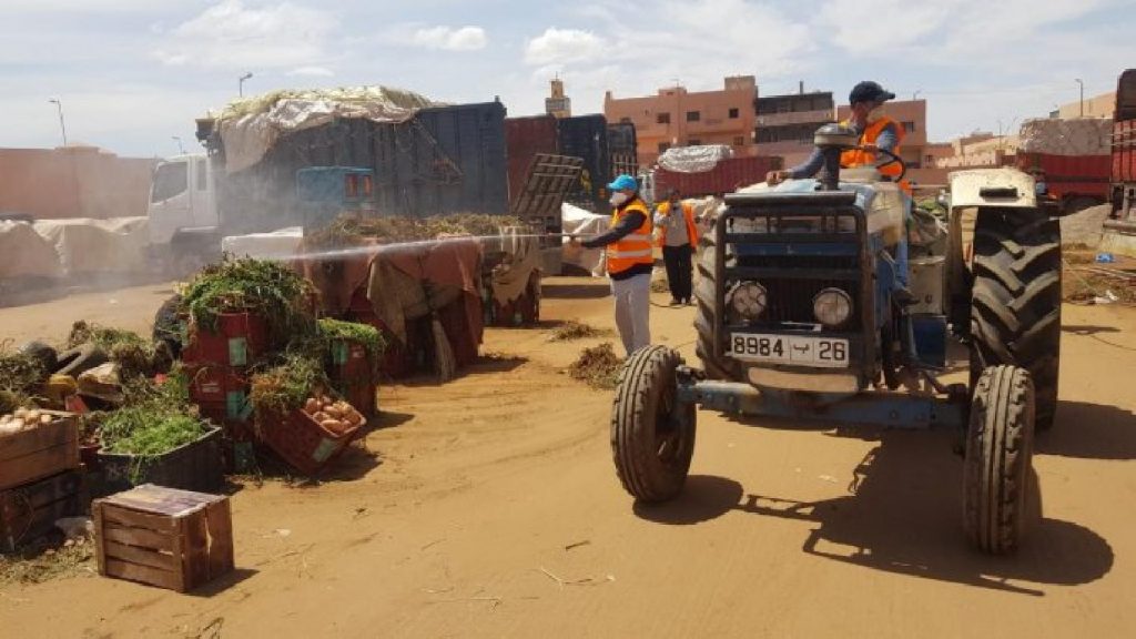 مصالح حفظ الصحة بمراكش تواصل عملية تعقيم سوق الجملة المسار