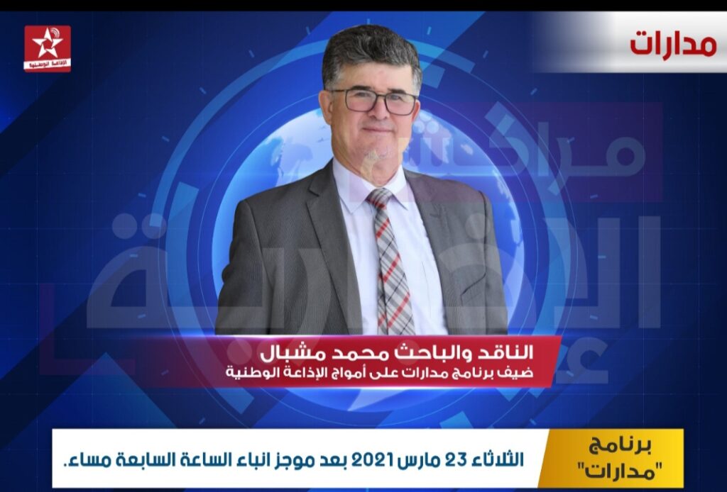 وتذاع هذه الحلقة من برنامج “مدارات ” مع الدكتور محمد مشبال ، على أمواج الإذاعة الوطنية من الرباط ، يوم الثلاثاء 23 مارس الجاري ، مباشرة بعد موجز أنباء السابعة مساء .