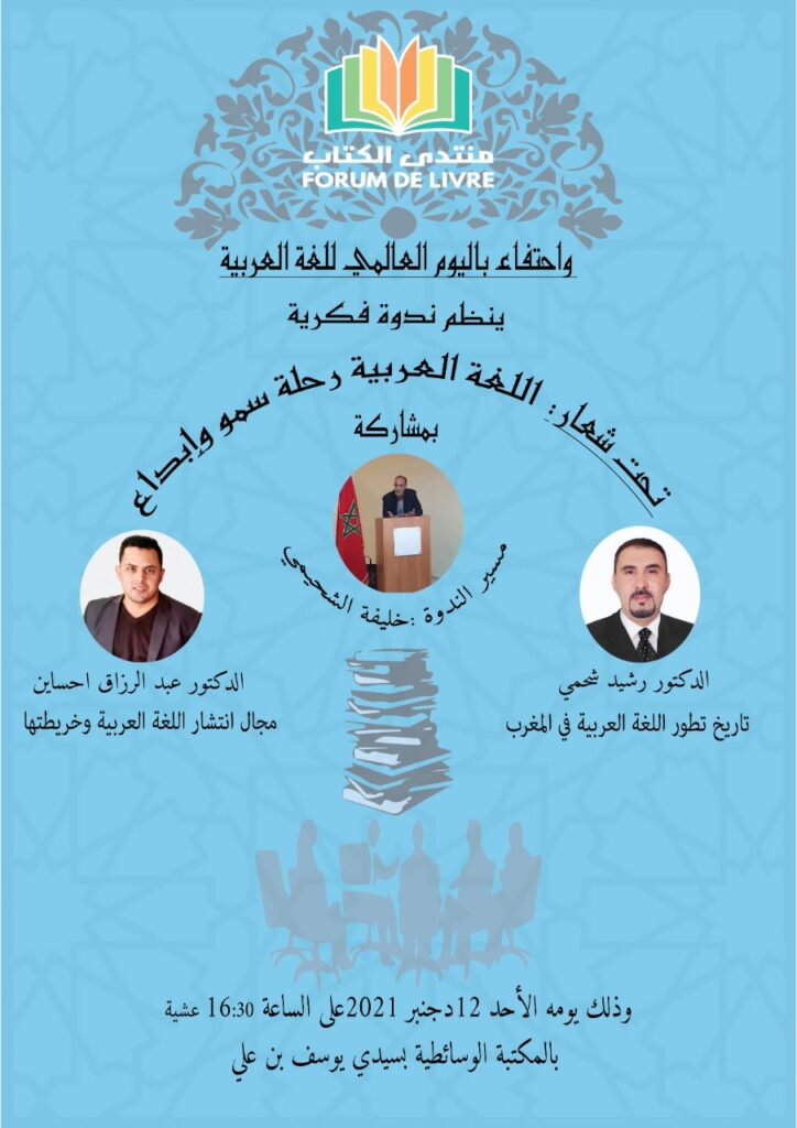 تخليدا لليوم العالمي للغة العربية الذي يصادف 18 من دجنبر من كل سنة، ينظم منتدى الكتاب ندوة فكرية تحت شعار “اللغة العربية رحلة سمو وإبداع”.