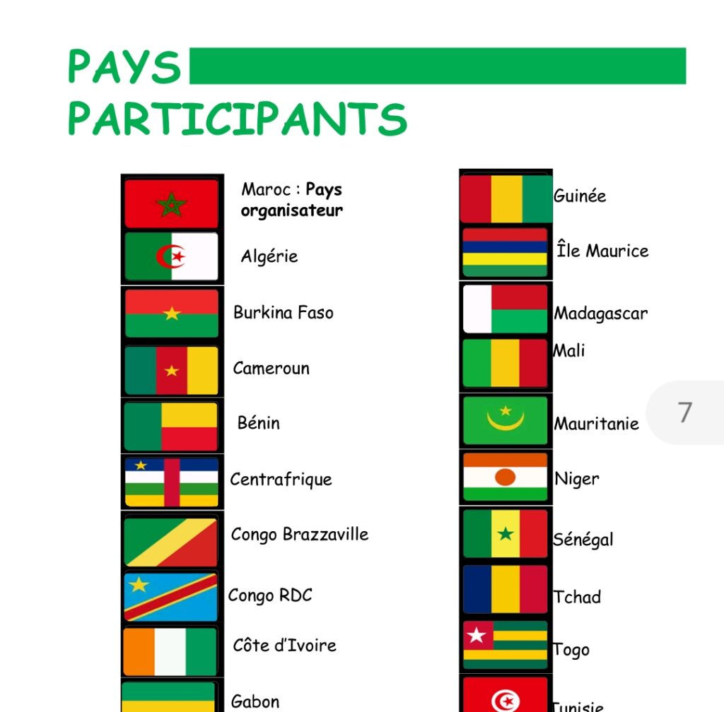 هذه البطولة مفتوحة في وجه الدول الإفريقية 22 المنضوية تحت لواء الكونفدرالية الإفريقية للسكرابل الفرنكفوني حيث تم تأكيد مشاركة 13 منتخبا، وتسجيل حضور 123 مشاركا من السينغال، الكاميرون، مالي، البنين، الكوت ديفوار، الكونغو، الكونغو الديمقراطية، تونس، بوركينافاسو، النيجر، موريتانيا، التوغو، الغابون والمغرب.