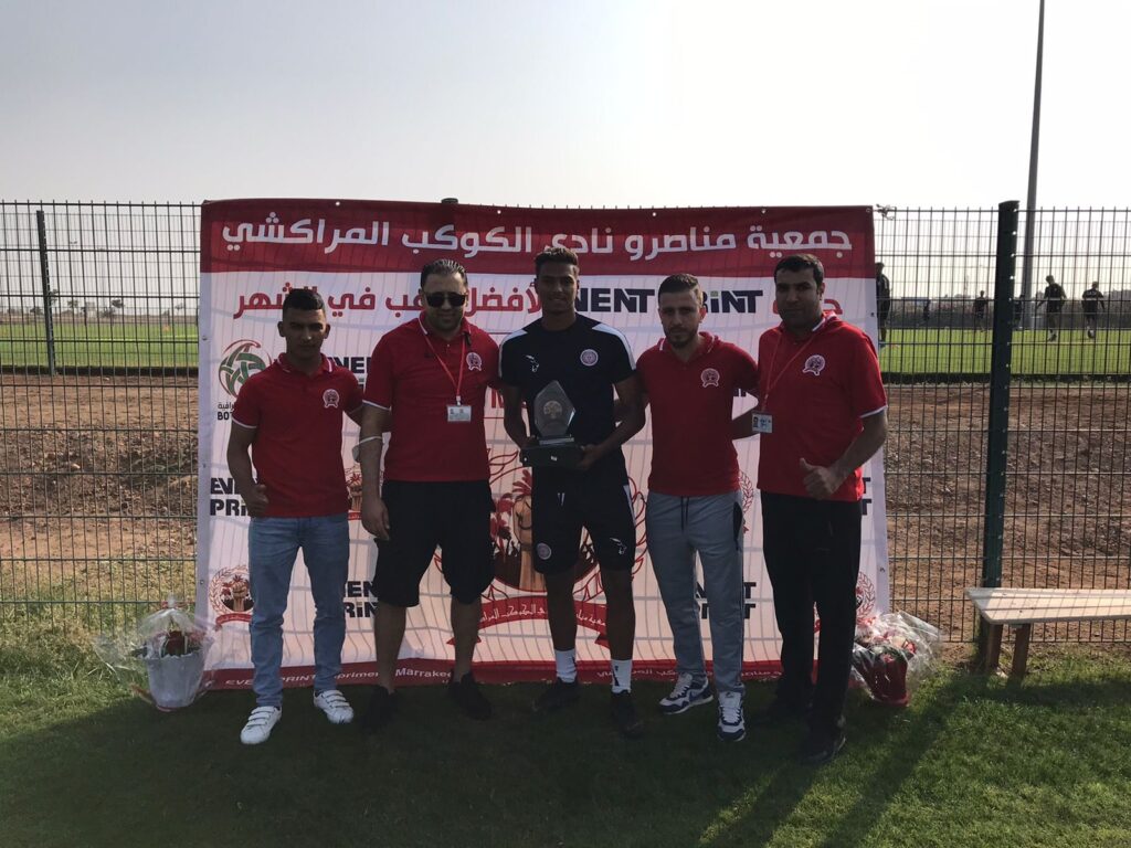 وقد سلم أعضاء من جمعية مناصرو الكوكب الجائزة للاعب يوسف موفنان خلال الحصة التدريبية التي اجراها الفريق الأربعاء الماضي، كما تم كذلك منح باقات ورد لكل من المشرف العام محمد بوطهير والمدرب خالد الجنكاري.