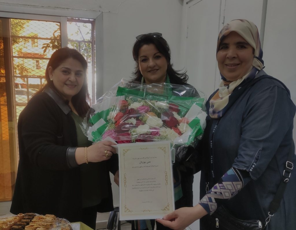 وتم تقديم باقة ورود للمديرة منى بوزيان، وكذا شهادة تقدير وامتنان باسم ساكنة الحي المحمدي الشمالي بالداوديات، وذلك إشادة بالدور الهام الذي تلعبه، وحرصها على قضاء مصالح المواطنين.