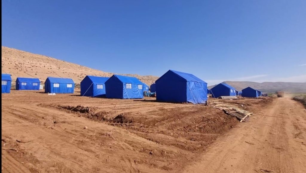 نصب خيام لإيواء أسر فقدت منازلها بسبب أشغال بناء سد ايت زياد