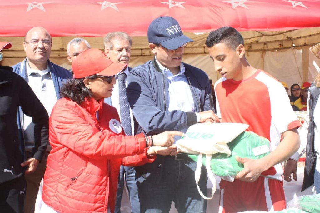 كما اشرف العامل بنشيخي إلى جانب نوال المتوكل على توزيع ملابس واغطية وافرشة جديدة و مساعدات غذائية لفائدة 565 مستفيد و مستفيدة.