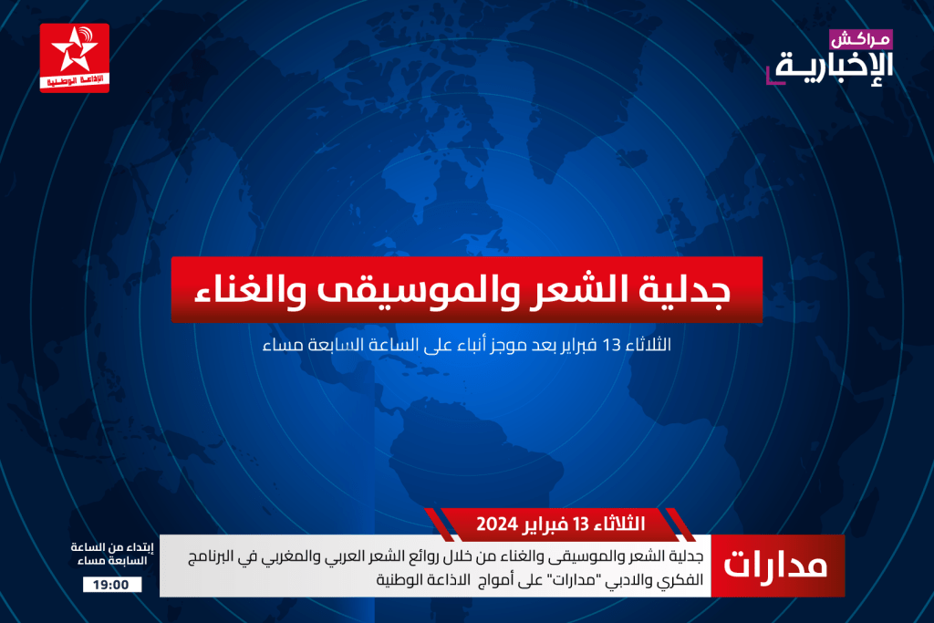 بعد موجز أنباء الساعة السابعة مساء مع حلقة جديدة يخصصها الكاتب الإعلامي عبدالإله التهاني ، للحديث حول جدلية الشعر والموسيقى والغناء ، والتي أنتجت أجمل القصائد المغناة في تاريخ الشعر العربي والمغربي .