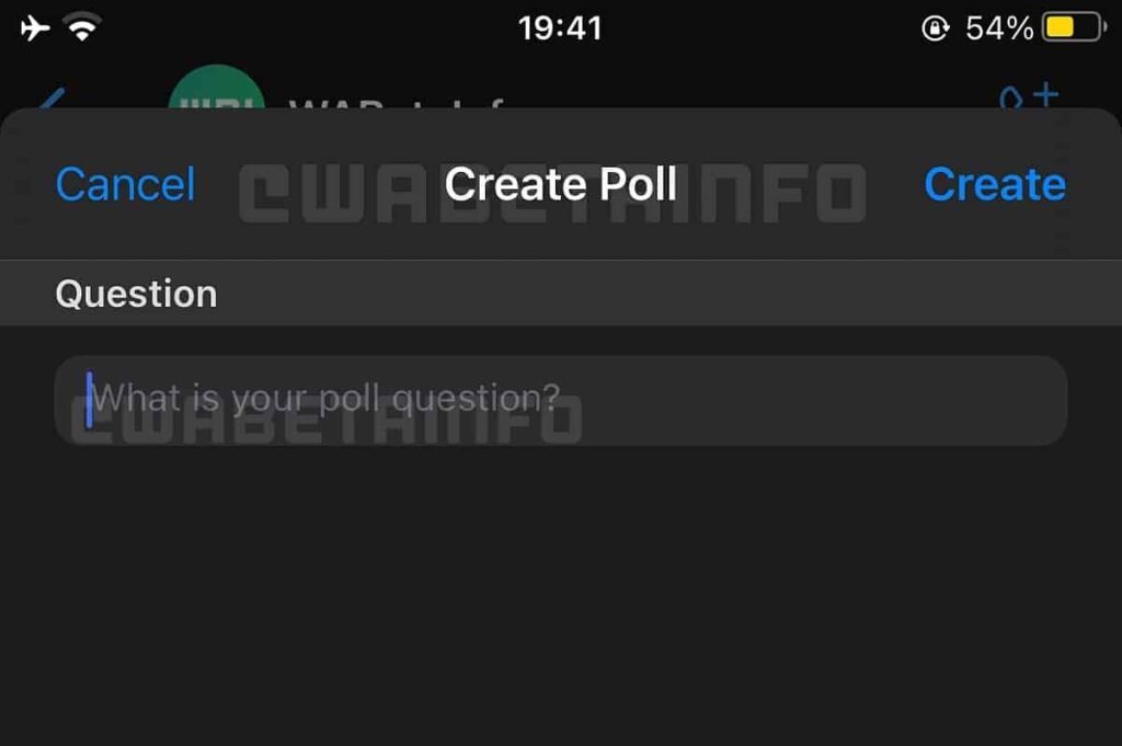 ووفقًا للصورة التي شاركتها WABetaInfo، عند اختيار إضافة استطلاع جماعي جديد، تطلب المنصة من المستخدم إدخال السؤال للاستطلاع.