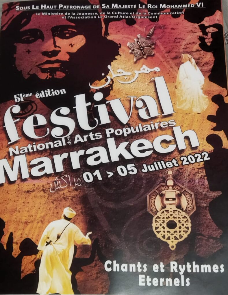 وأشار إلى أن المهرجان الوطني للفنون الشعبية في مراكش ماضٍ نحو طلب الاعتراف به تراثا إنسانيا لاماديا من طرف اليونسكو وكذلك تراثا إسلاميا وعربيا من الجهات الإقليمية والجهوية المسؤولة دوليا المخولة حق الاعتراف.