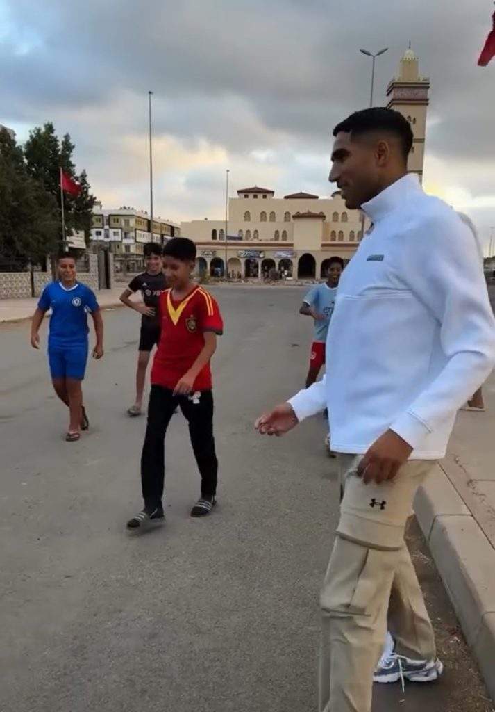 في مشهد عفوي خطف الدولي المغربي أشرف حكيمي الانظار، بعد انتشار فيديو، يوثق للعبه مع مجموعة من الأطفال، الذين كانوا يلعبون كرة القدم بأحد الشوارع.