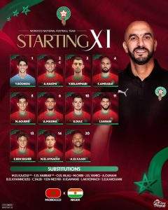 أعلن وليد الركراكي ، مدرب المنتخب الوطني عن تشكيلة النخبة الوطنية التي ستواجه مساء يومه الجمعة 5 شتنبر 2025 منتخب النيجر بملعب المجمع الرياضي الأمير مولاي عبد الله بمدينة الرباط.