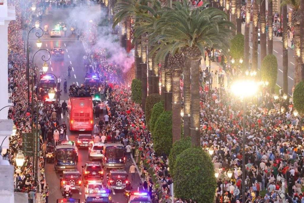 وجاب موكب الحافلة المكشوفة لـ”أشبال الأطلس”، المزيّنة بالألوان الوطنية، شوارع العاصمة وسط هتافات جماهيرية وأهازيج شعبية وزغاريد، فيما ازدانت شرفات المباني بالأعلام الوطنية، تعبيرا عن الفرحة بهذا الإنجاز العالمي.