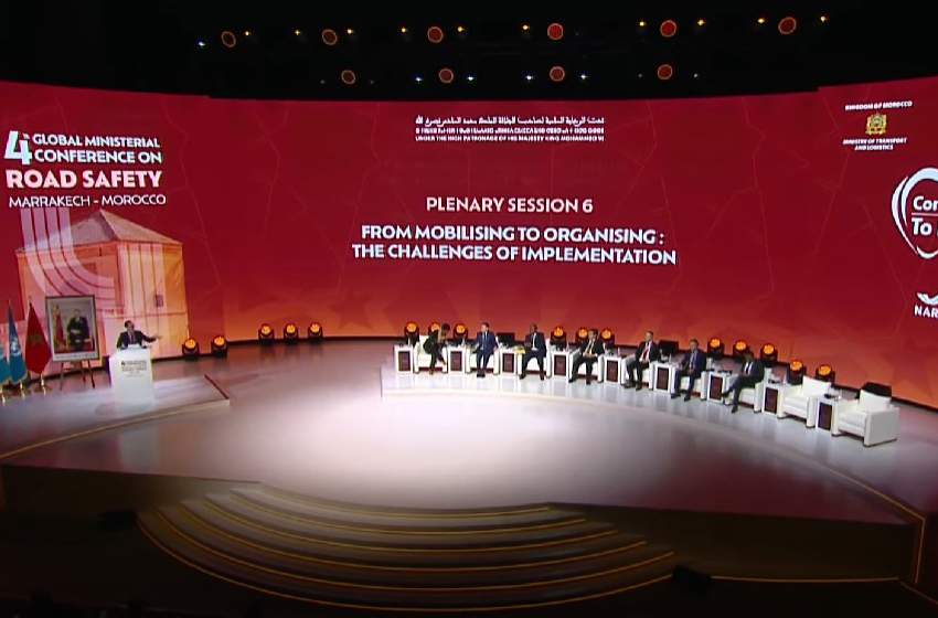 يشار إلى أن المؤتمر الوزاري العالمي الرابع حول السلامة الطرقية، الذي تنظمه وزارة النقل واللوجستيك، تحت الرعاية السامية لصاحب الجلالة الملك محمد السادس، بتعاون مع منظمة الصحة العالمية تحت شعار “الالتزام من أجل الحياة”، يشهد مشاركة وفود رسمية يترأسها أزيد من 100 وزير يشرفون على قطاعات النقل والداخلية والبنية التحتية والصحة.