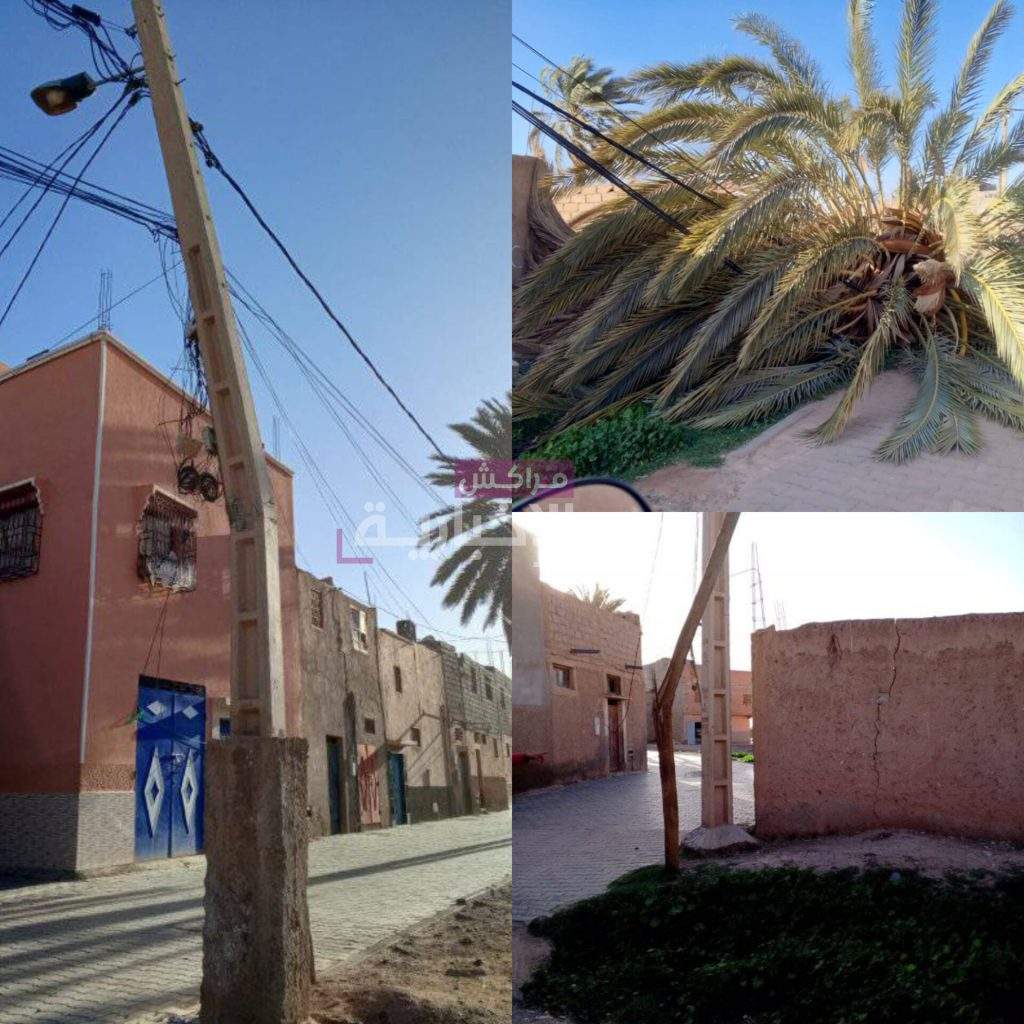 ولم تتوقف الأضرار عند هذا الحد، بل تسببت الرياح في انكسار عدة أعمدة كهربائية، ما أثار مخاوف الساكنة من مخاطر سقوطها أو تسببها في انقطاع التيار الكهربائي.