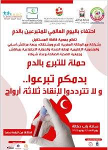 وتأتي هذه المبادرة في اٍطار تخليد اليوم العالمي للتبرع بالدم، وستعرف مشاركة عشرات المواطنين.