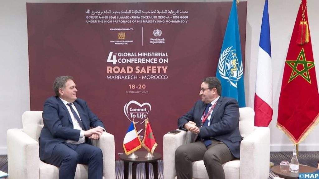 أجرى وزير النقل واللوجيستيك، عبد الصمد قيوح، أمس الإثنين بمراكش، مباحثات مع الوزير المنتدب المكلف بالنقل في الجمهورية الفرنسية، السيد فيليب تابارو، وذلك على هامش انعقاد المؤتمر الوزاري العالمي الرابع حول السلامة الطرقية.