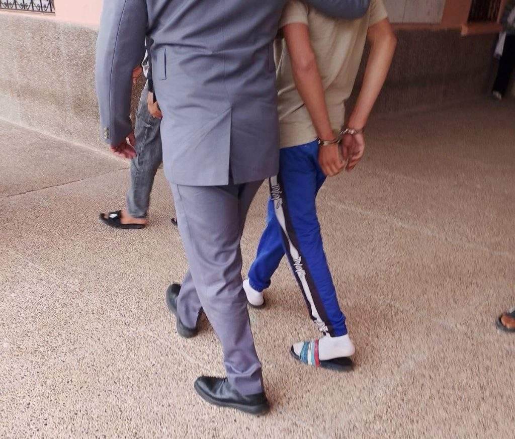 وجرى انتقال عناصر الدرك الملكي إلى المؤسسة التعليمية المعنية وقامت باقتياد التلميذ، بعد تكبيل يديه، إلى مركز الدرك الملكي حيث تم الاستماع إلى أقواله في محضر رسمي، قبل أن تقرر النيابة العامة الاحتفاظ به وتقديمه أمام أنظار قاضية الأحداث.