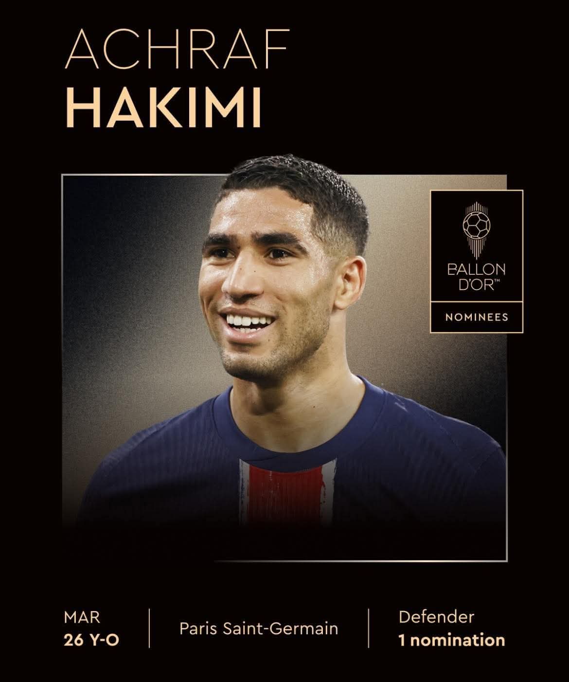 وشهدت اللائحة التي ضمت 30 لاعبا، تواجد الدولي المغربي اشرف حكيمي ضمن المرشحين لنيل إحدى أفضل الجوائز الفرضية لكرة القدم في العالم.