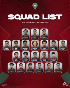 كشف مدرب المنتخب الوطني لكرة القدم لأقل من 20 سنة، محمد وهبي، الجمعة، خلال ندوة صحفية عقدها بمركب محمد السادس لكرة القدم بسلا، عن لائحة اللاعبين الـ 21 المدعوين للمشاركة في نهائيات كأس العالم لهذه الفئة، التي ستحتضنها الشيلي من 27 شتنبر الجاري إلى 19 أكتوبر المقبل.