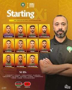 أعلن الناخب الوطني طارق السكتيوي، مدرب المنتخب الوطني المغربي للاعبين المحليين، عن التشكيلة الرسمية التي ستخوض المباراة أمام منتخب كينيا، لحساب مباراته الثانية من دور المجموعات (المجموعة الأولى) ضمن منافسات بطولة إفريقيا للاعبين المحليين CHAN 2024.