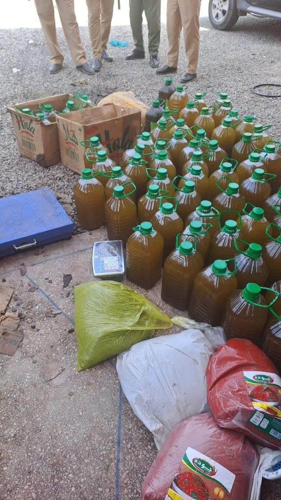 وأسفرت العملية التي تمت في سياق مراقبة جودة المواد الغذائية، عن حجز كميات كبيرة من زيت الزيتون المغشوش، ما يقارب 5 أطنان من الزيت ومشتقاته، علاوة عن ضبط أزيد من 100 برميل من الزيتون غير الصالحة للاستهلاك، بالإضافة إلى مواد الهريسة والحامض، فضلاً عن معدات تُستخدم في خلط وتعبئة الزيوت بطرق غير قانونية.