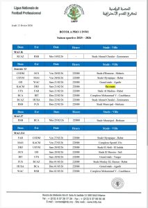 كما كشفت ذات اللجنة عن مواعيد المباريات المؤجلة، التي لم تجرى في مواعيدها بسبب مشاركات الفرق المغربية في المنافسات الخارجية.