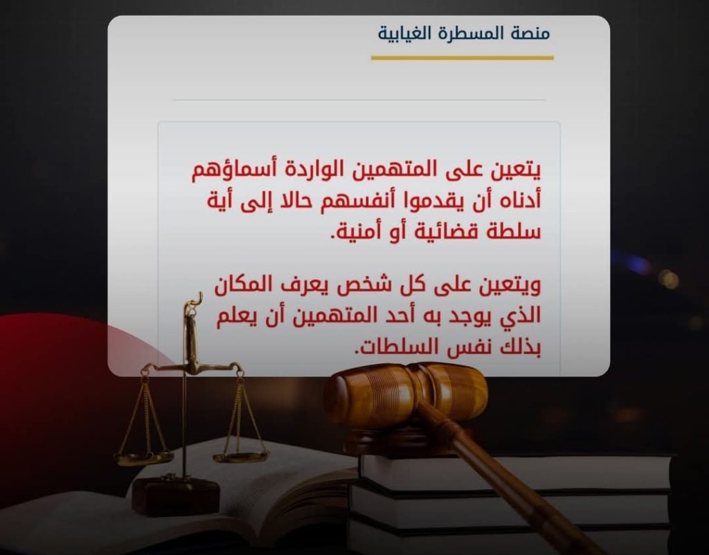 وفي هذا السياق، تدعو المنصة الرقمية المواطنين إلى الاطلاع على أسماء وهويات الأشخاص المعنيين بالمساطر الغيابية، وإبلاغ السلطات القضائية أو الأمنية عند توفر أي معلومات حول أماكن تواجدهم، وذلك في إطار تعزيز التعاون مع العدالة والمساهمة في تطبيق القانون.