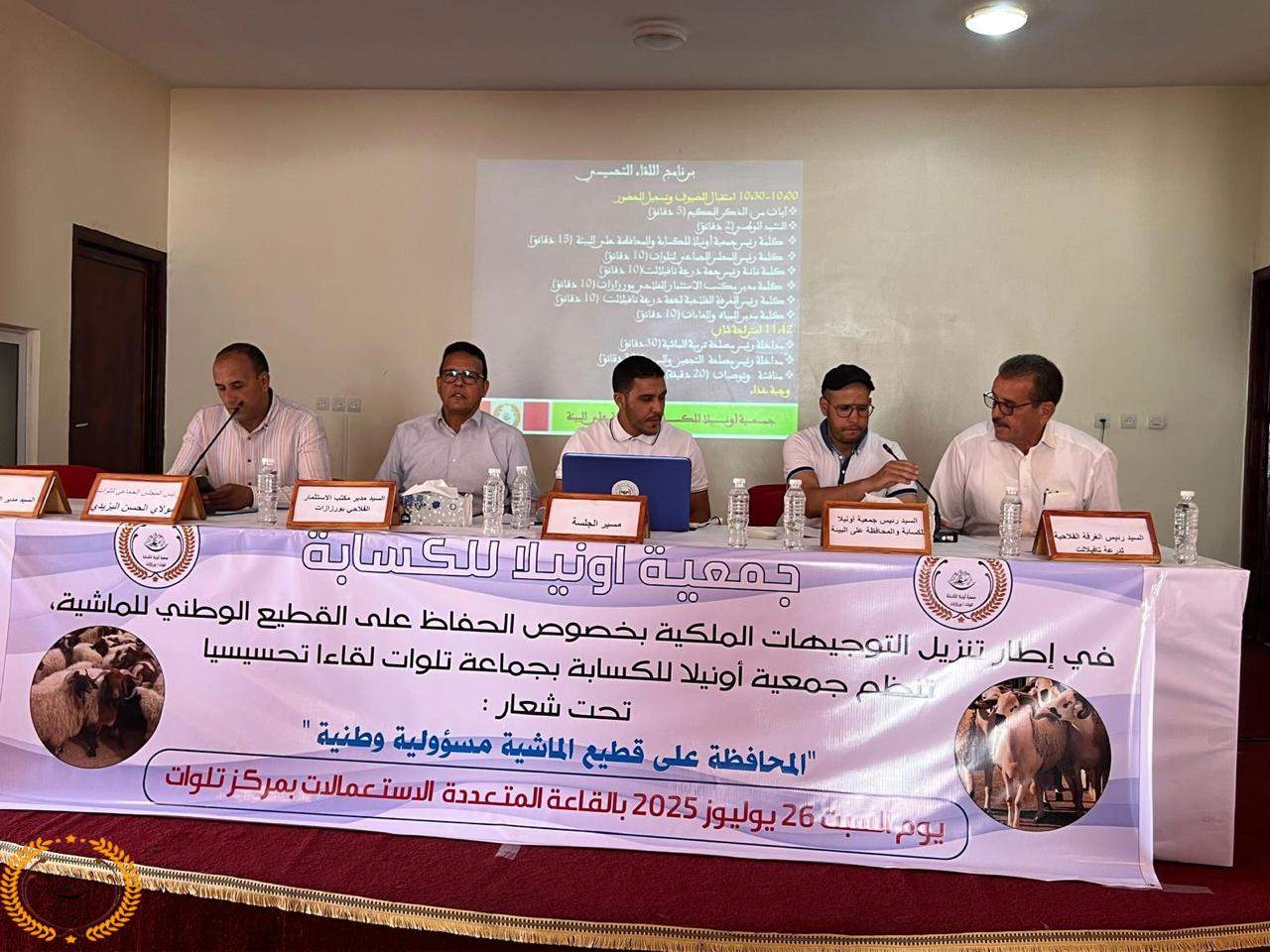 جمعية اونيلا الكسابة و المحافظة على البيئة تنظم ندوة تحسيسية حول المحافظة على القطيع الوطني تلوات وطنية جمعية اونيلا الكسابة و المحافظة على البيئة تنظم ندوة تحسيسية حول المحافظة على القطيع الوطني تلوات مراكش الإخبارية 2025-07-27 00:44 نُظمت يوم أمس السبت 26 يوليوز، بجماعة تلوات إقليم ورزازات ،ندوة تحسيسية هامة تحت شعار “المحافظة على القطيع الوطني مسؤولية وطنية”، وذلك بمبادرة...اقرأ المزيد