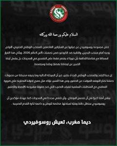 وأضاف البيان: “حبنا للبلد والمنتخب ثابت ولا يتغير، غير أن المرحلة الحالية وما تعرفه من تحديات، جعلتنا نختار التوقف المؤقت، مع التأكيد على ضرورة التماشي مع المستجدات الوطنية والإيمان بحقوق الشعب المغربي المشروعة في الصحة والتعليم.”